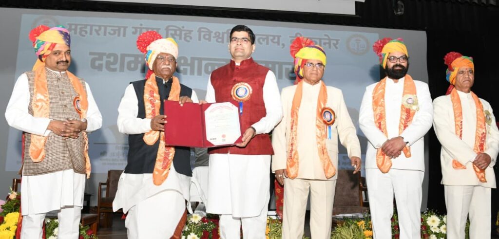 राज्यपाल बुधवार को महाराजा गंगासिंह विश्वविद्यालय के संत मीराबाई सभागार में आयोजित विश्वविद्यालय के दशम दीक्षांत समारोह की अध्यक्षता कर रहे थे।